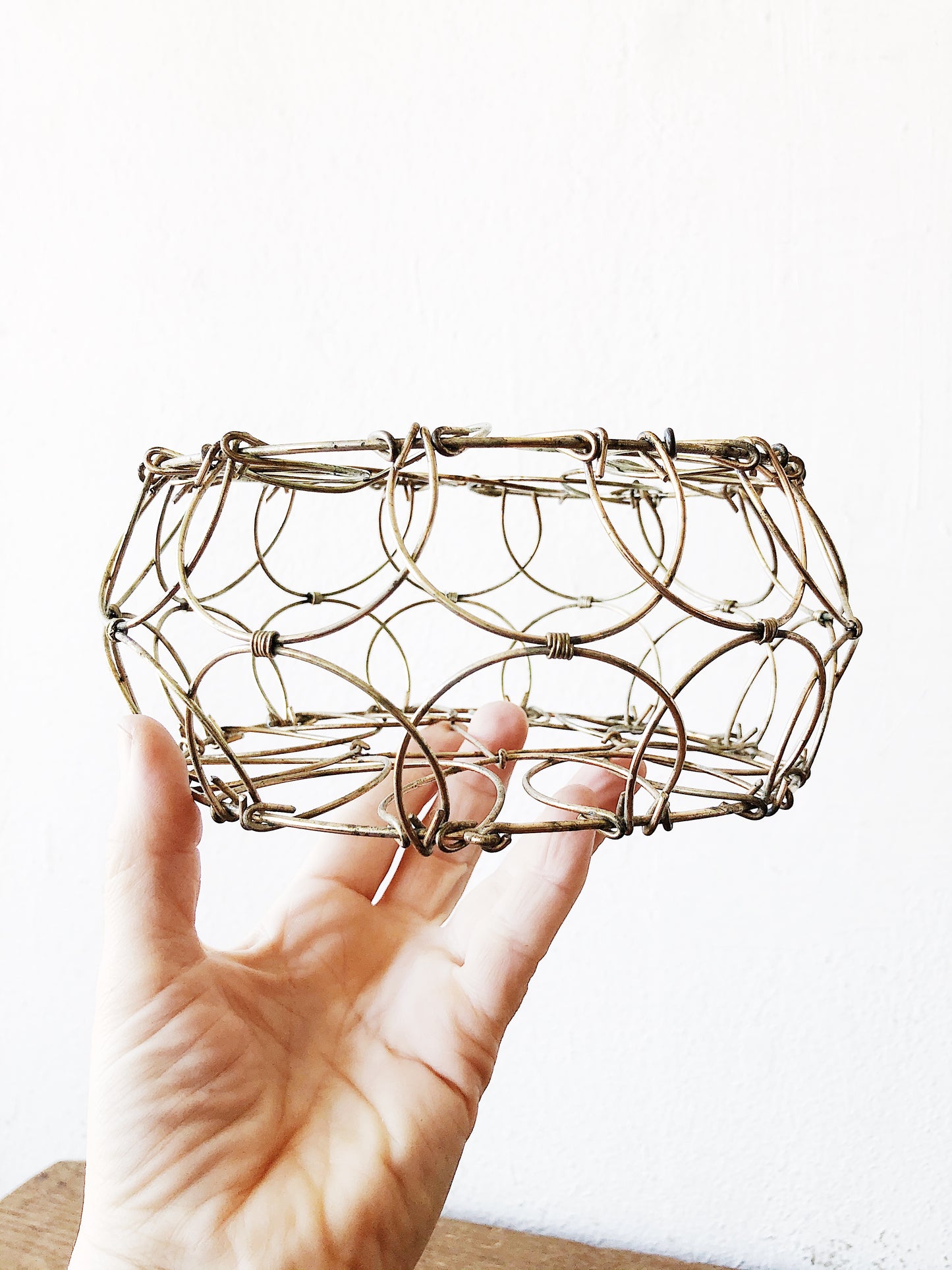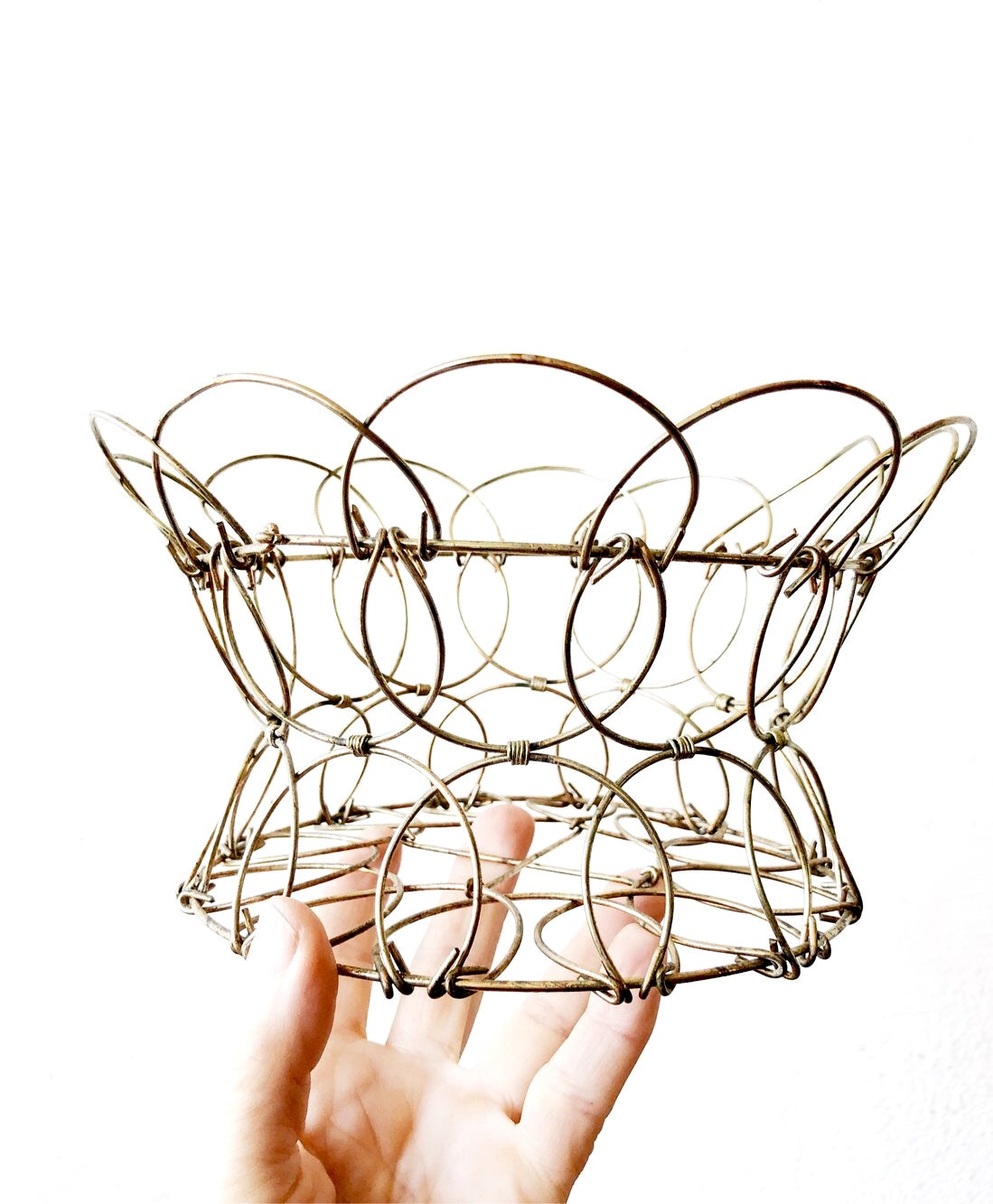 These collapsible wire egg baskets were popular in the 20s and with good reason. Sculptural and handy, and fully folds down for storage or hanging