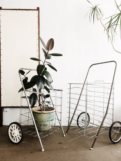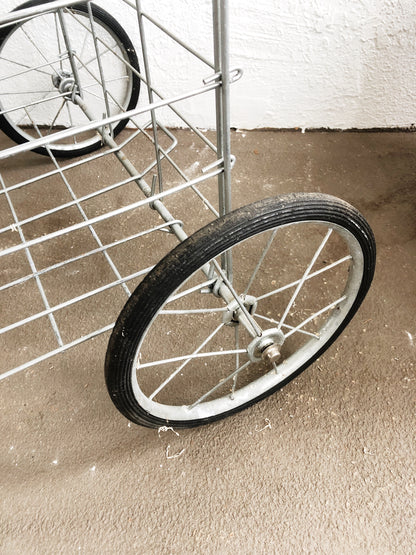 Do like the French do. Vintage wire cart with wheels, folds for travel. Perfect for laundry, antiquing, storing toys