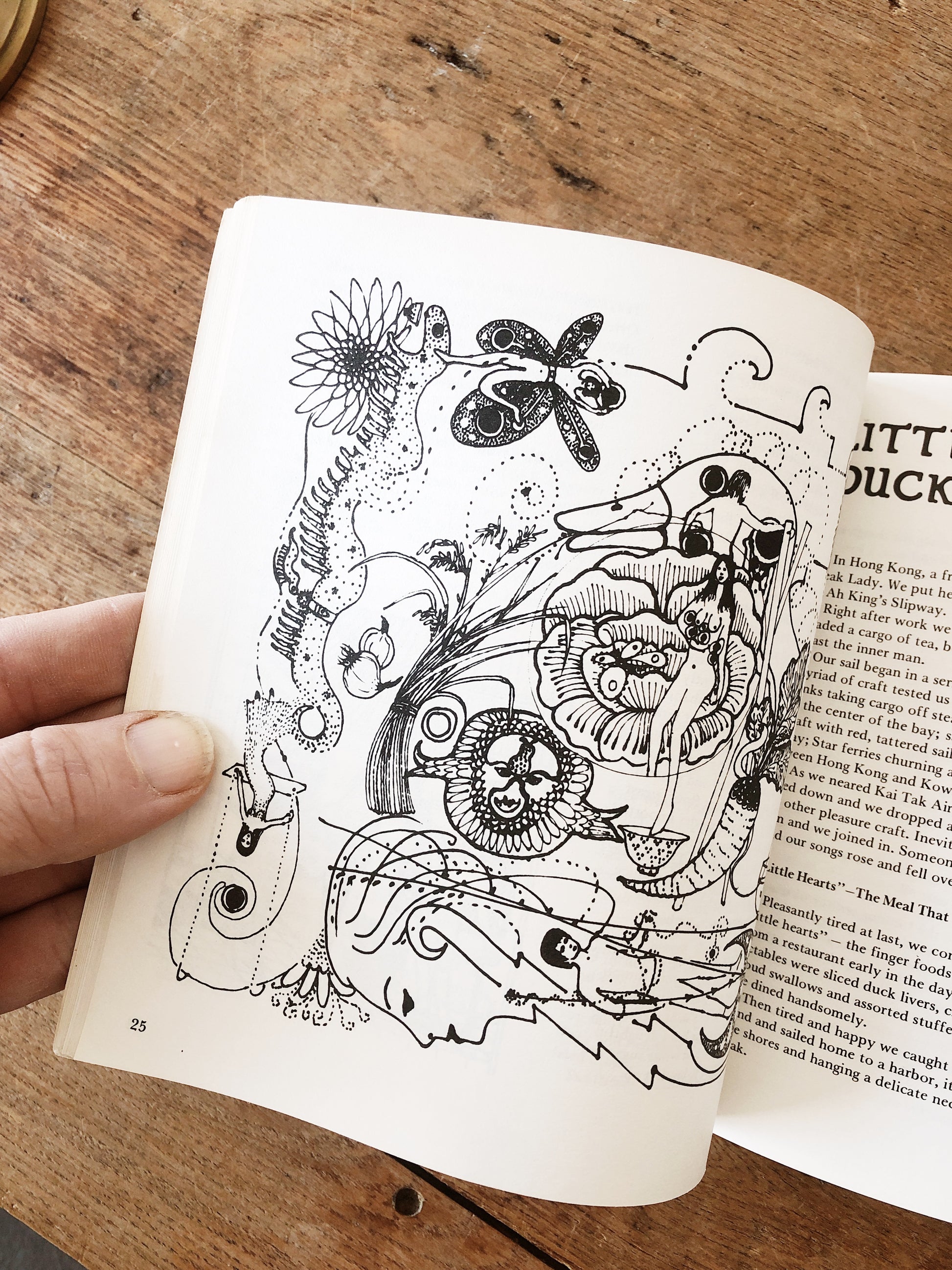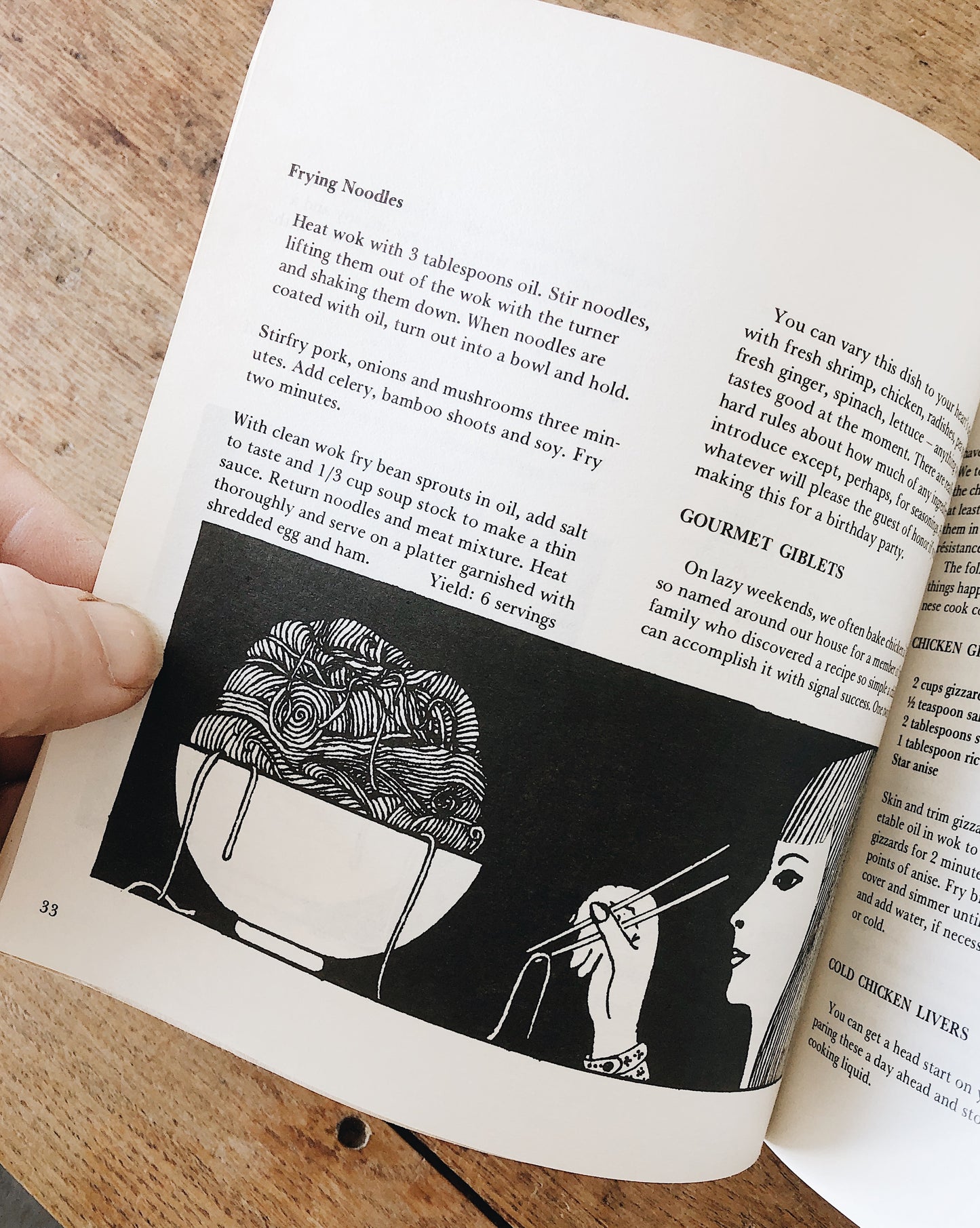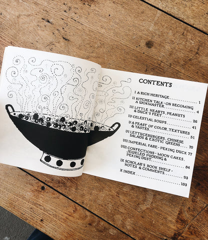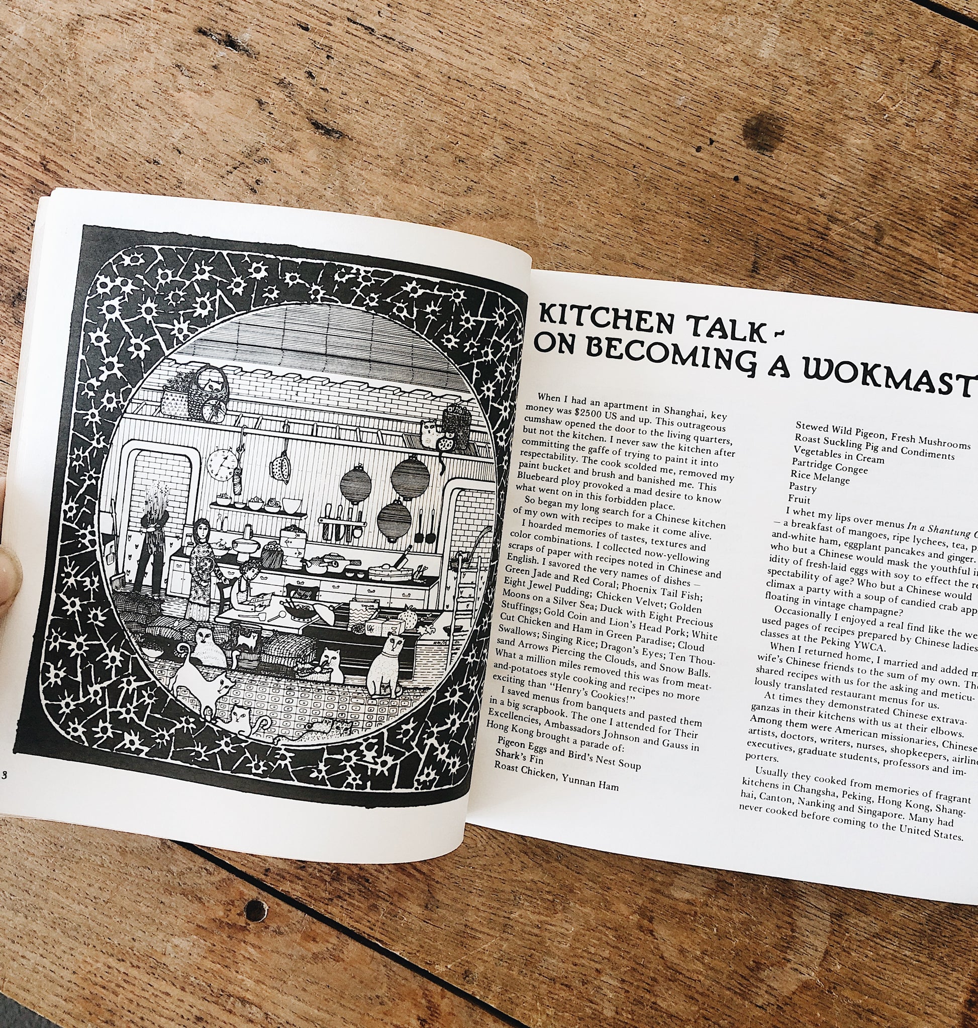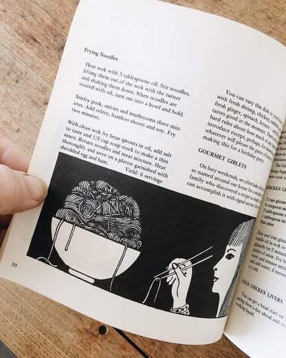 Vintage wok cookbook with the most charming illustrations by Win Ng. Comes with a recipe book. 1976