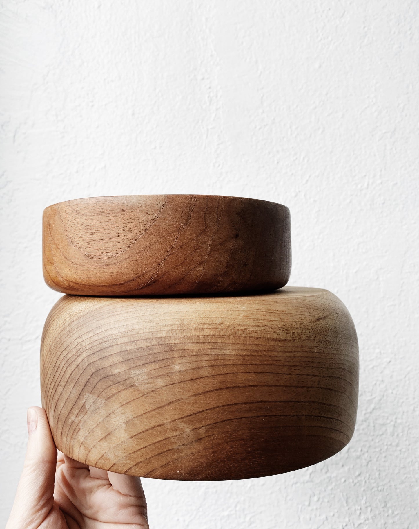 This is a medium sized vintage wood bowl that’s perfect for a large salad for one or two. Beautiful grain. The small one on top in second photo also available.