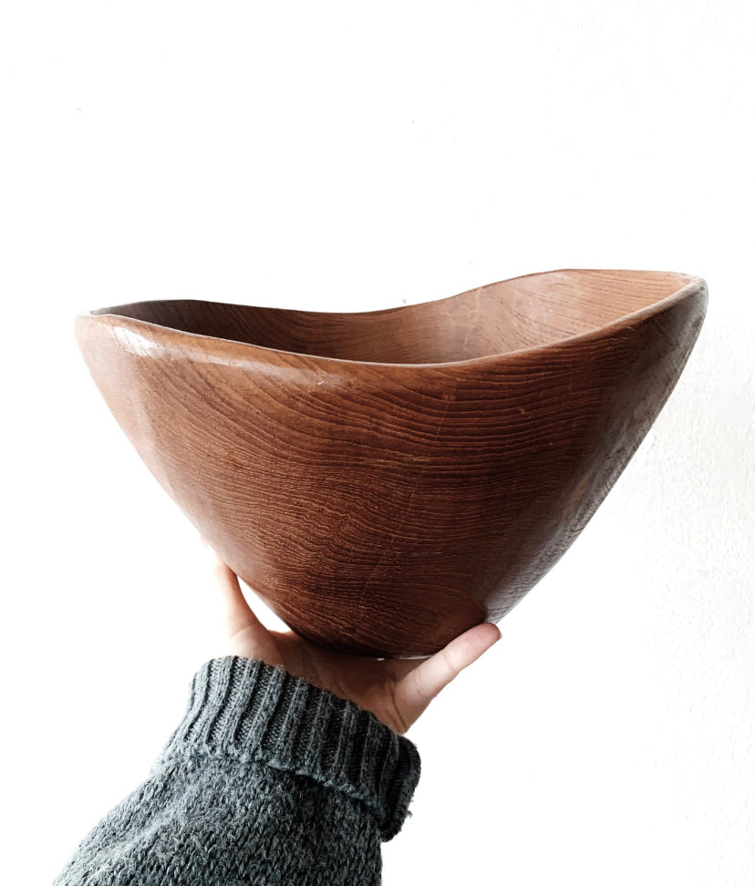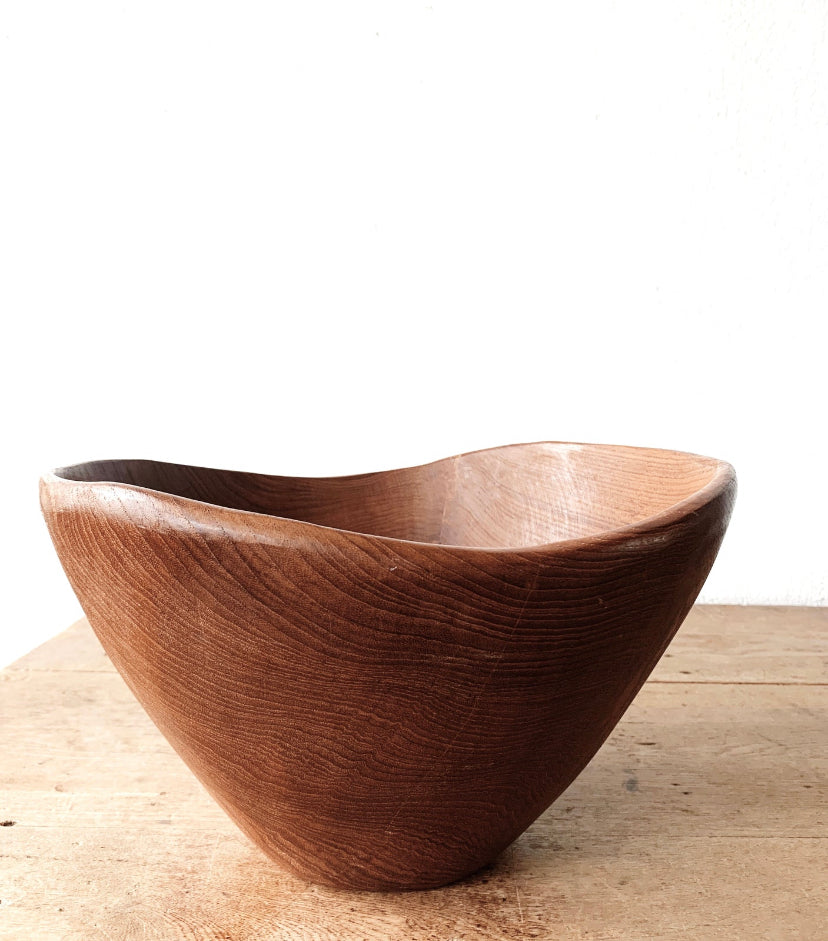 Vintage asymmetrical wood bowl in lovely condition. A few minor markings to the wood. Unsigned. 13x6.5”
