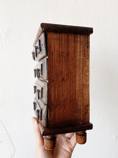 Lovely vintage wood jewelry chest of drawers. Four drawers with iron ring pulls. So lovely!