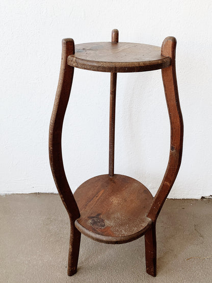Vintage wood plant stand for two plants! Nice curvy sides and great patina to the wood.
