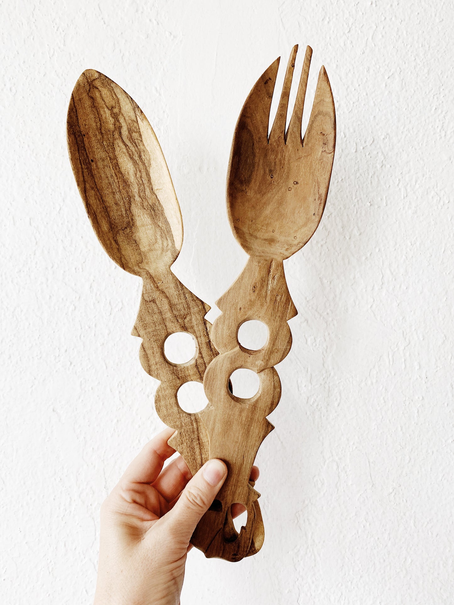 Vintage cutout wood salad servers. Nice condition, no cracks or chips.