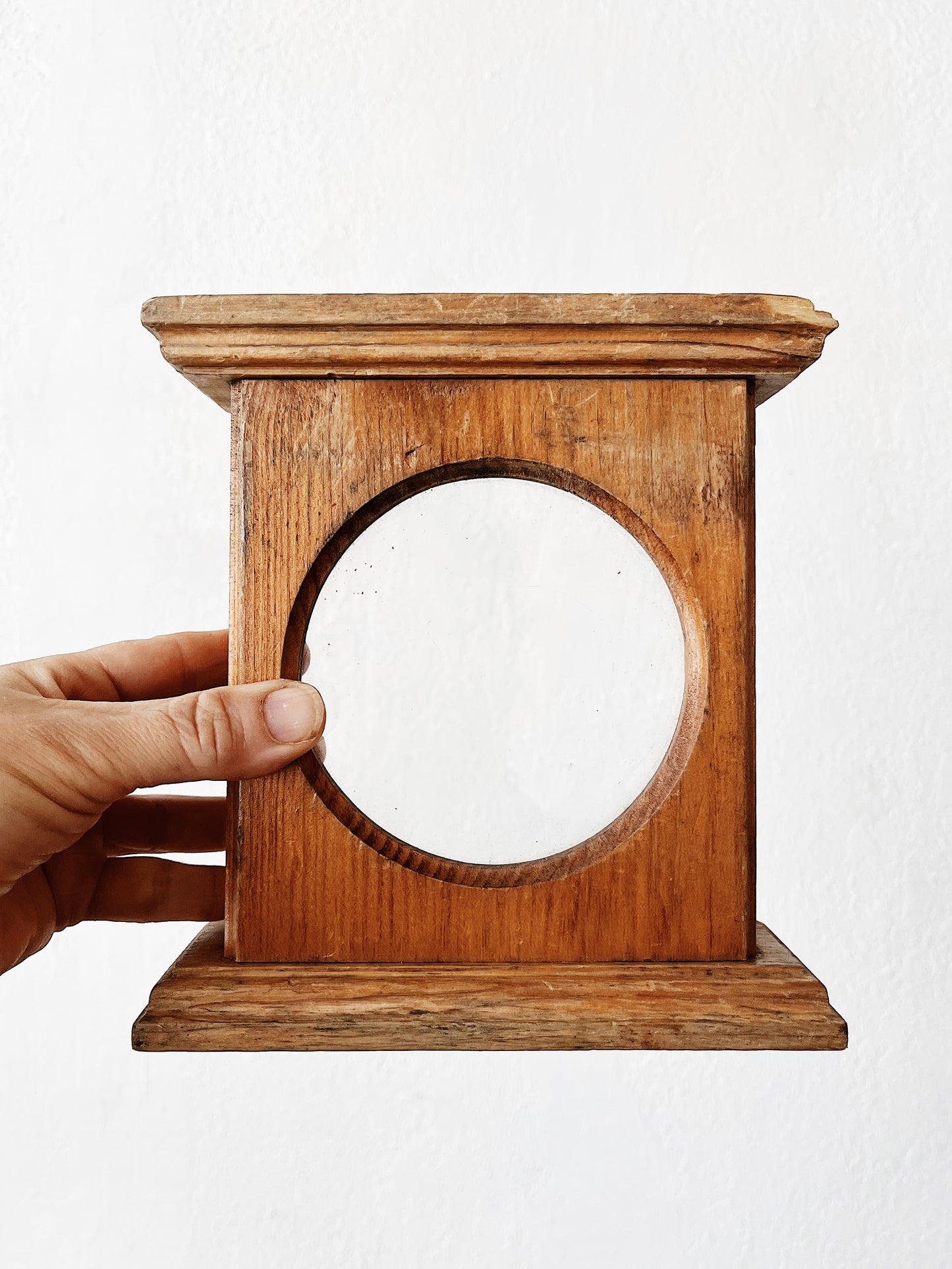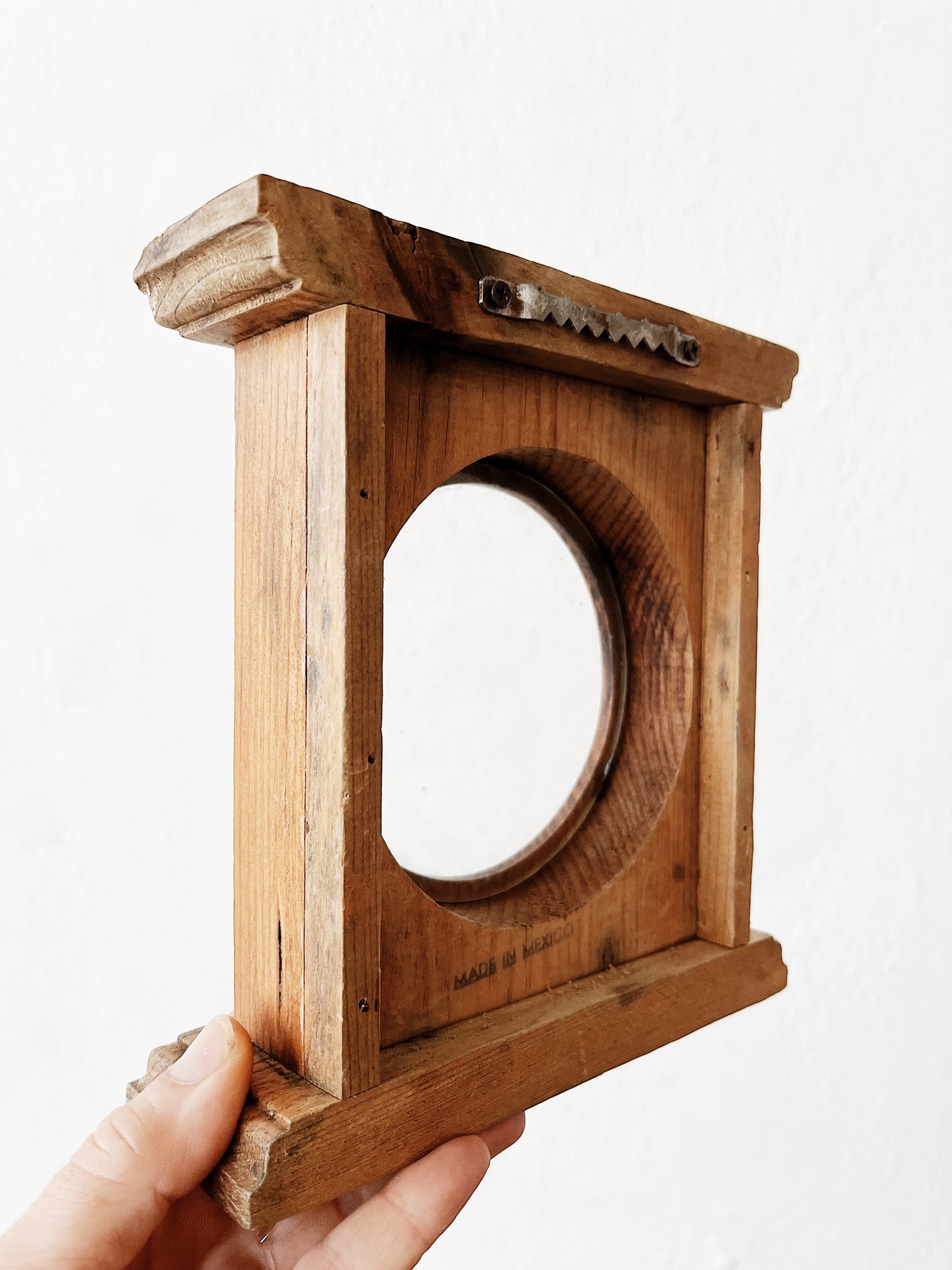 From Mexico, a wood and glass shadowbox with hook for hanging. Nice mellow old wood