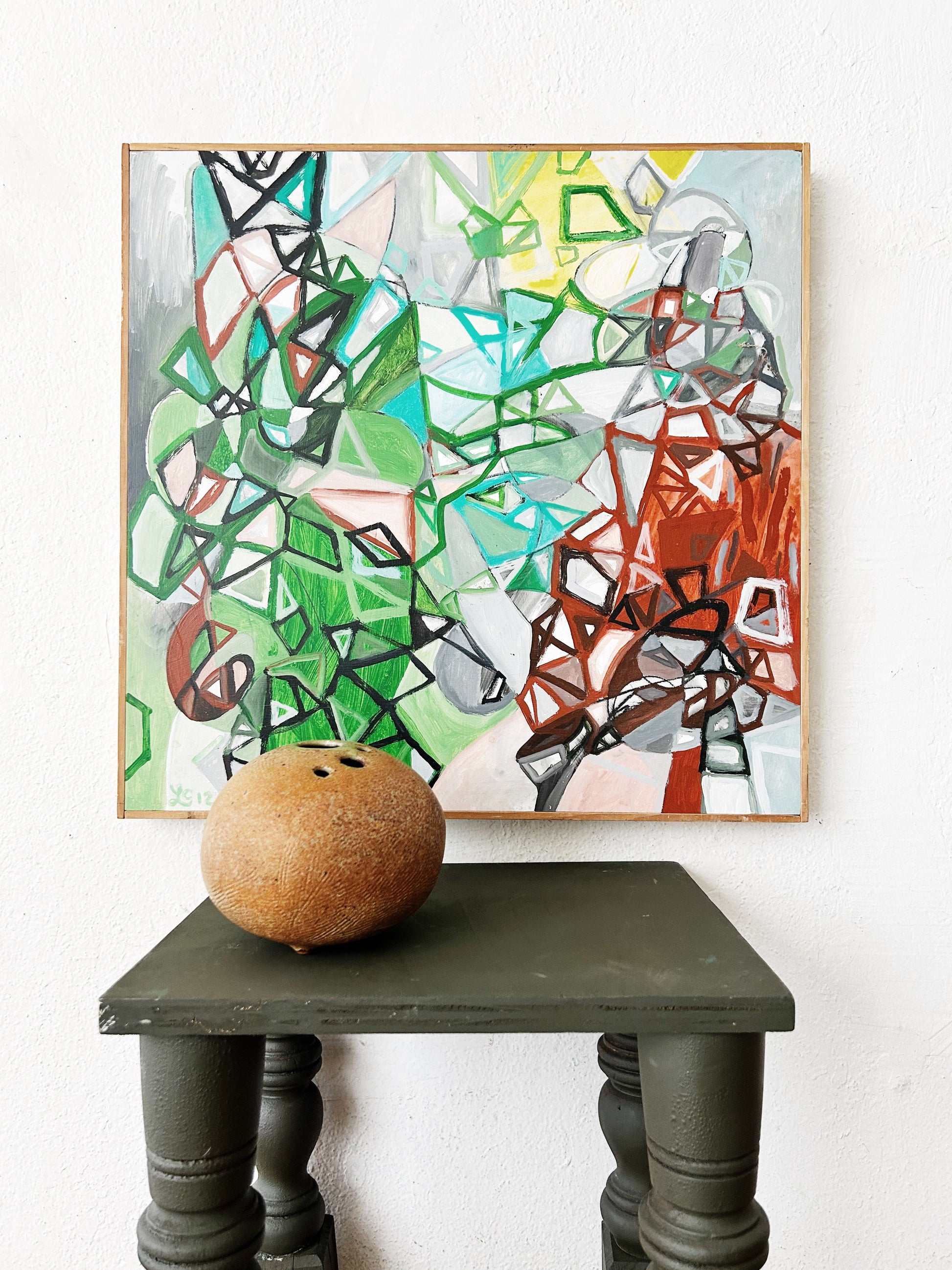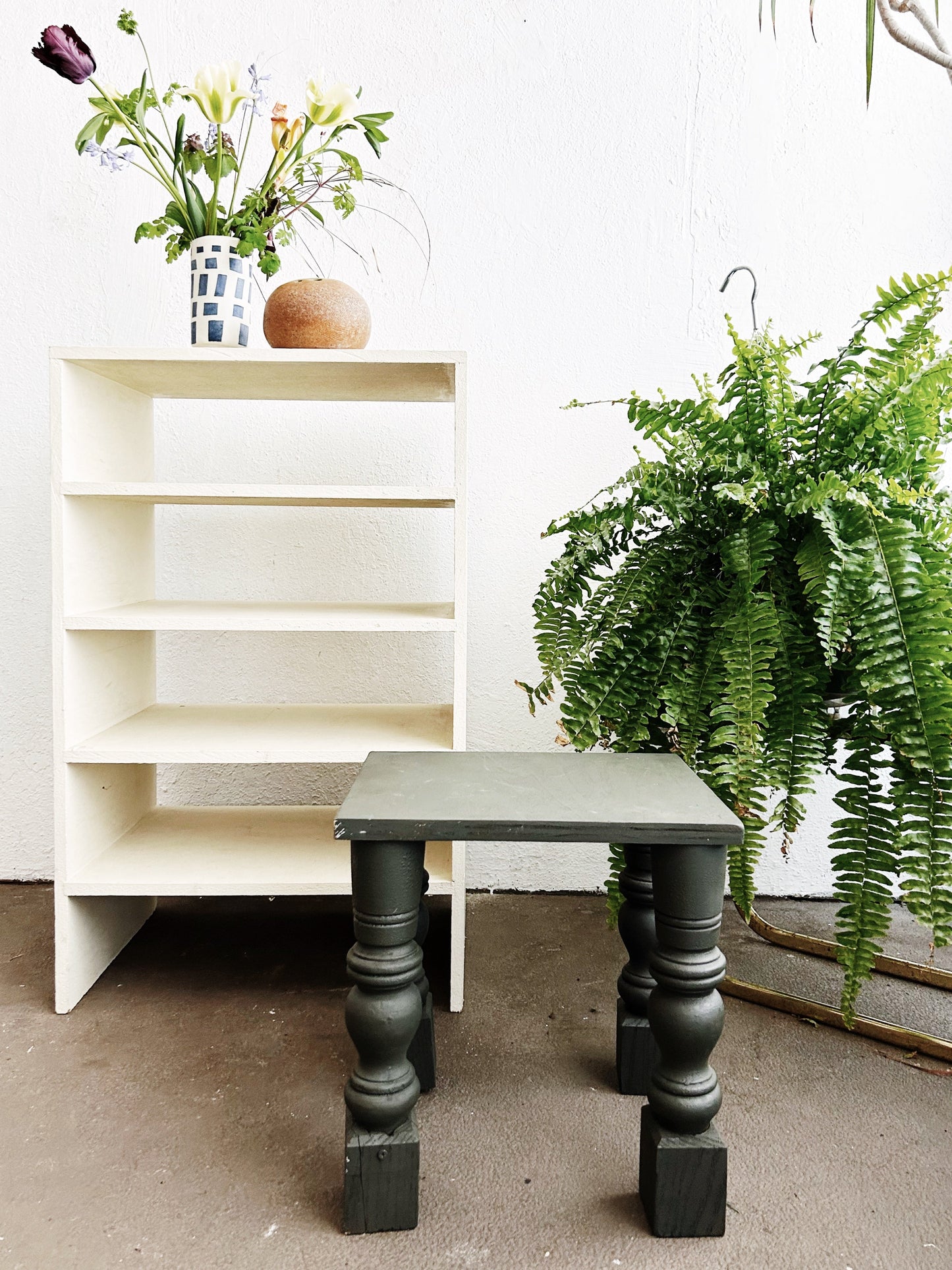 grey green table 14.5x12.5” top / 15” h SHIPPABLE