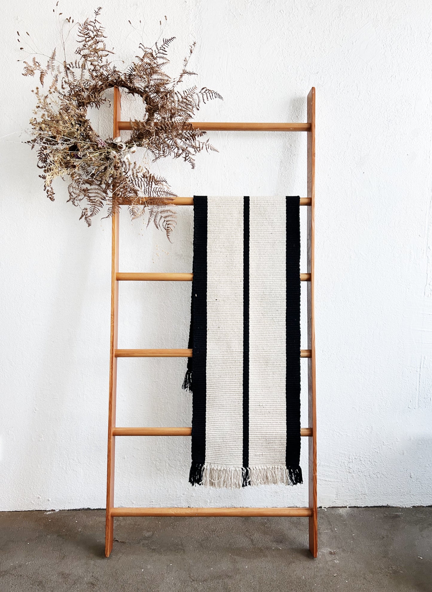 really nice larger sized wood ladder for hanging textiles. You can also attach an S hook and hang other things like art, jewelry, etc!