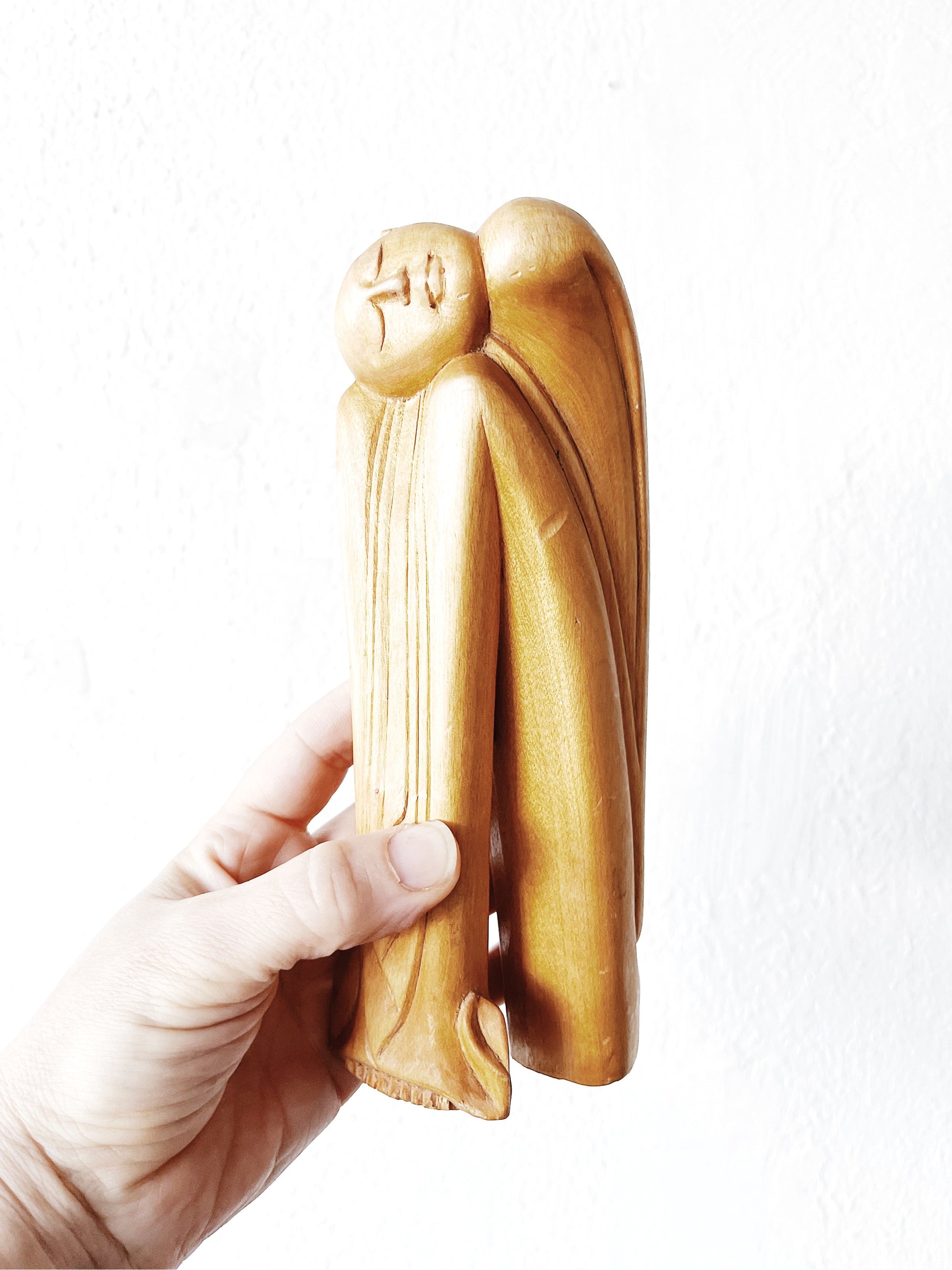 A carved wooden sculpture attributed to Willi Soukop. Very emotive and serene
