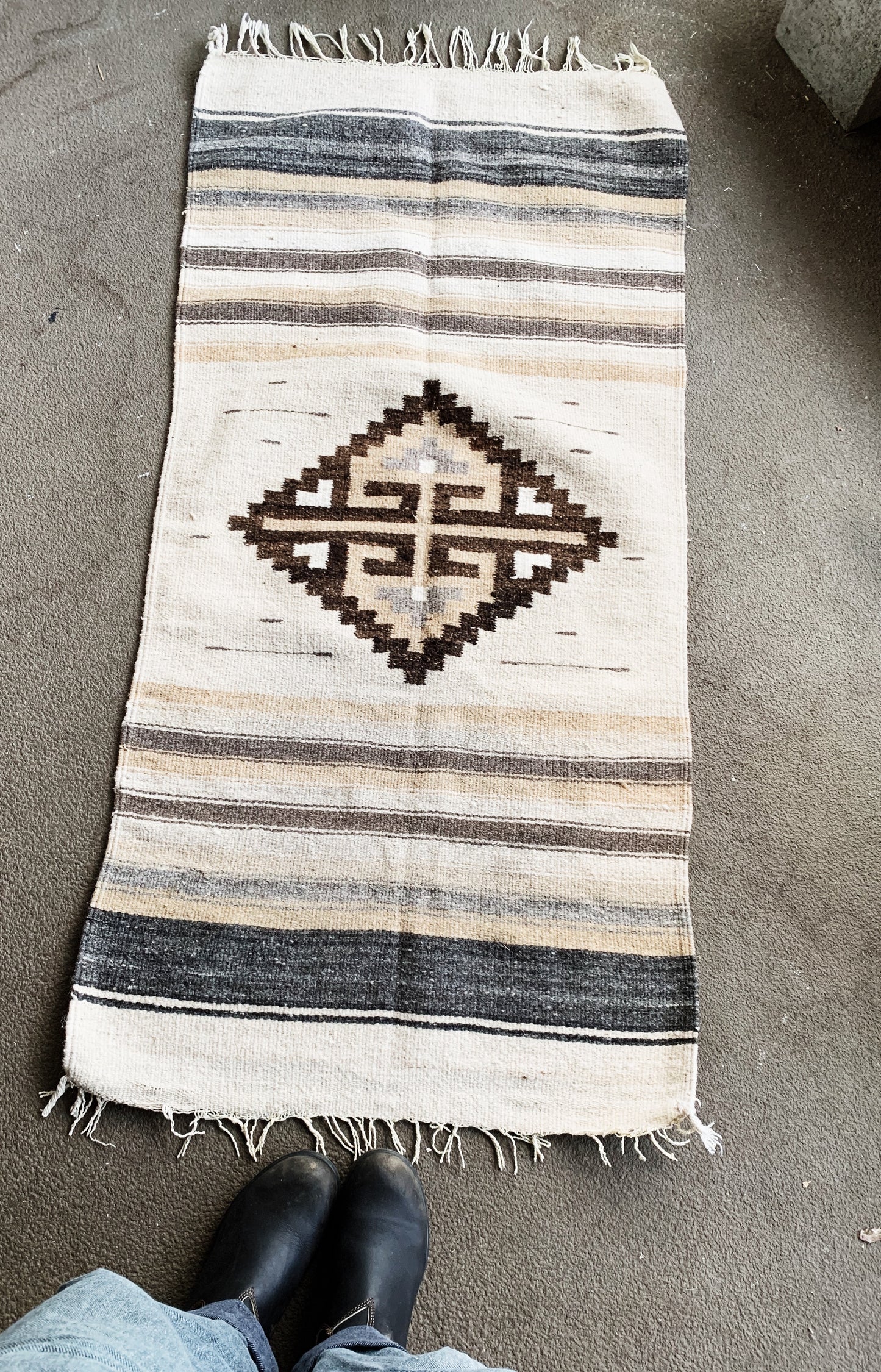 Lovely old wool runner in great shape. Easy neutrals and non precious! Nice size at 2.5x5.5 ft
