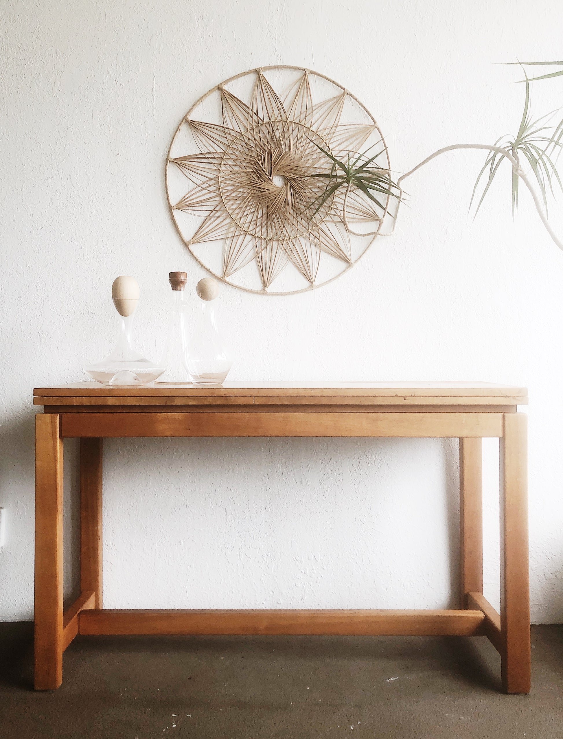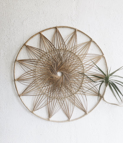 Simple and pretty vintage woven sun medallion. A nice larger piece with graphic punch