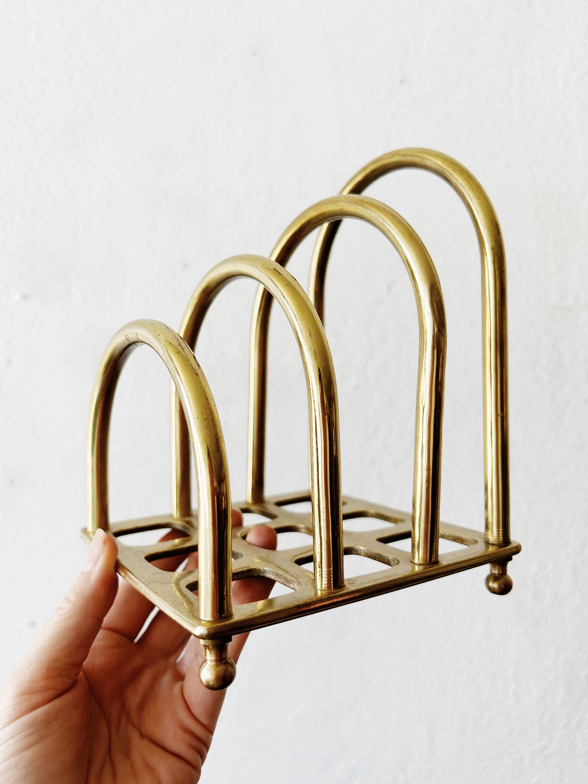 Great looking and useful vintage arched brass organizer. Great for mail, art, books, etc.