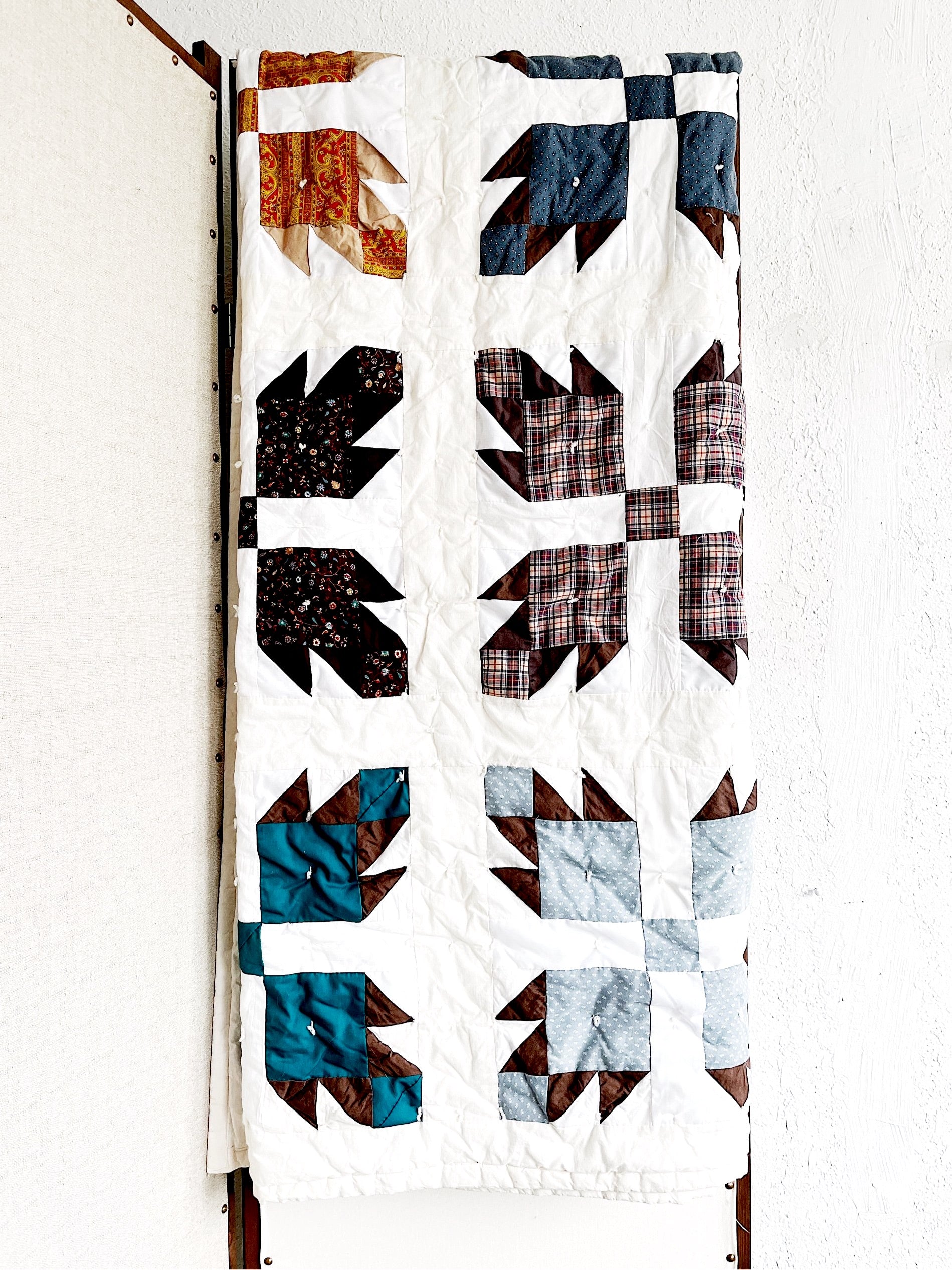 Handmade cotton quilt with a great homespun look. Muslin backing. Soft and fluffy.
