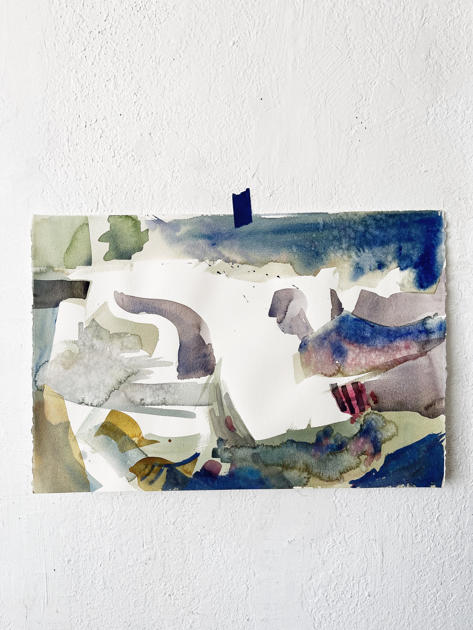 Original watercolor and gouache pieces from the collection of a prolific amateur female artist from Portland (she was also a mechanical engineer and avid traveler). Vaguely lanscape-ish but also quite abstract expressionist. Wonderful colors on heavy stock