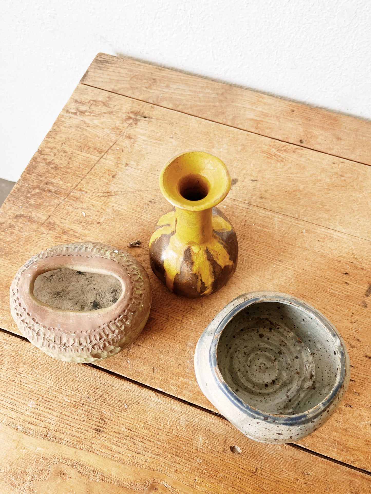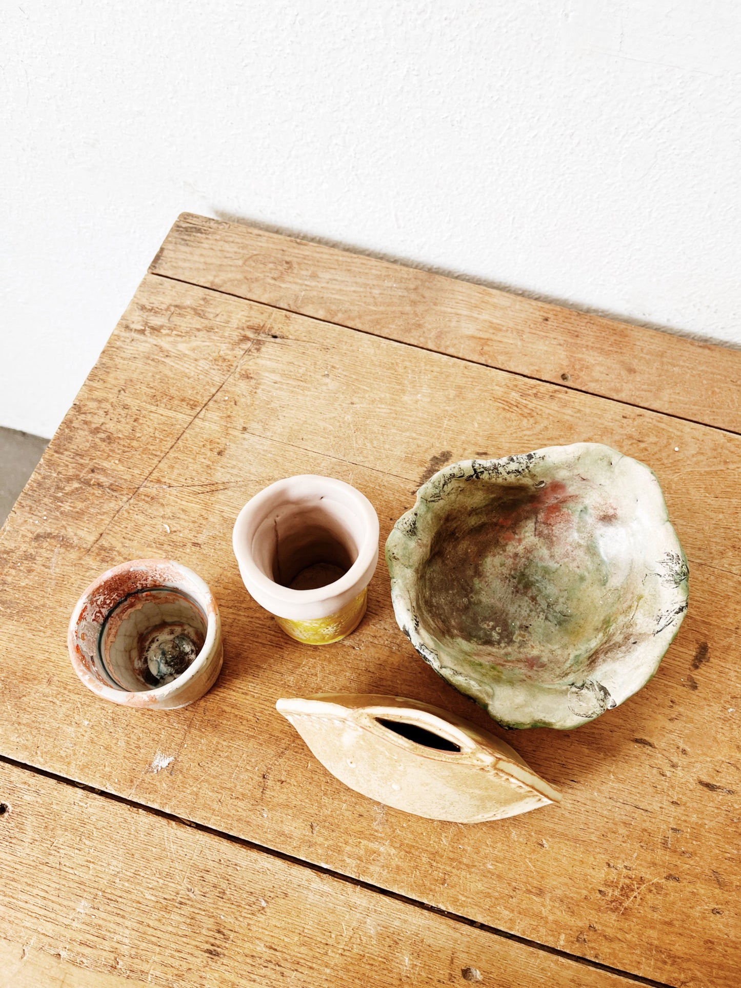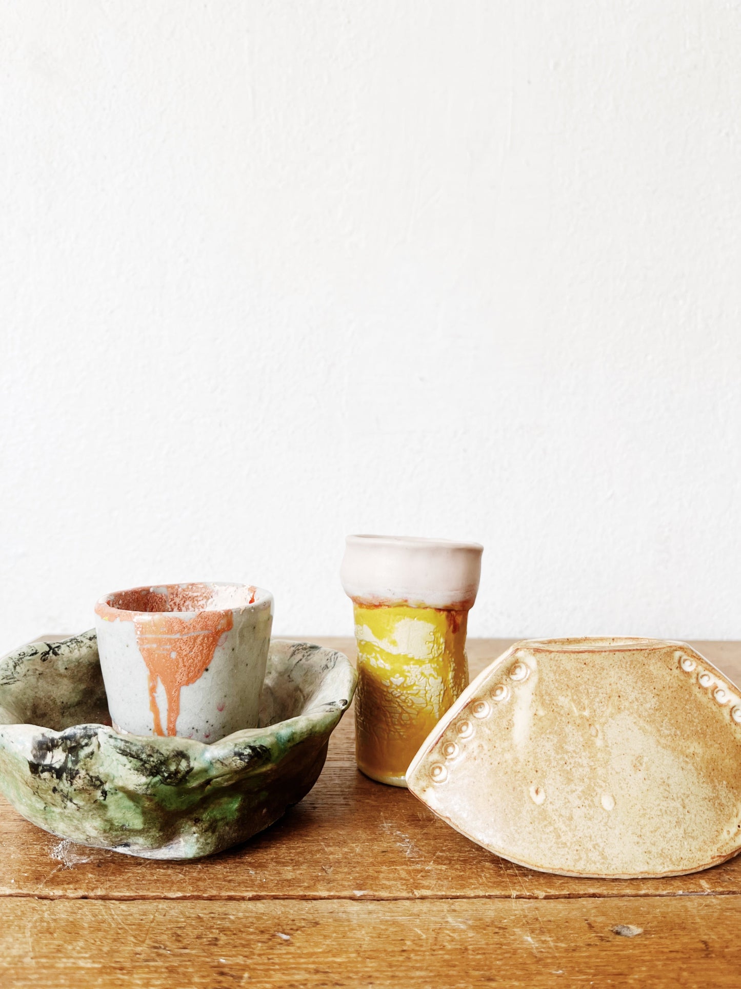 Two studio pottery collections available. Each item is handmade and whimsical in its own way. Great for potting up smaller cacti or using around the house/bath/kitchen
