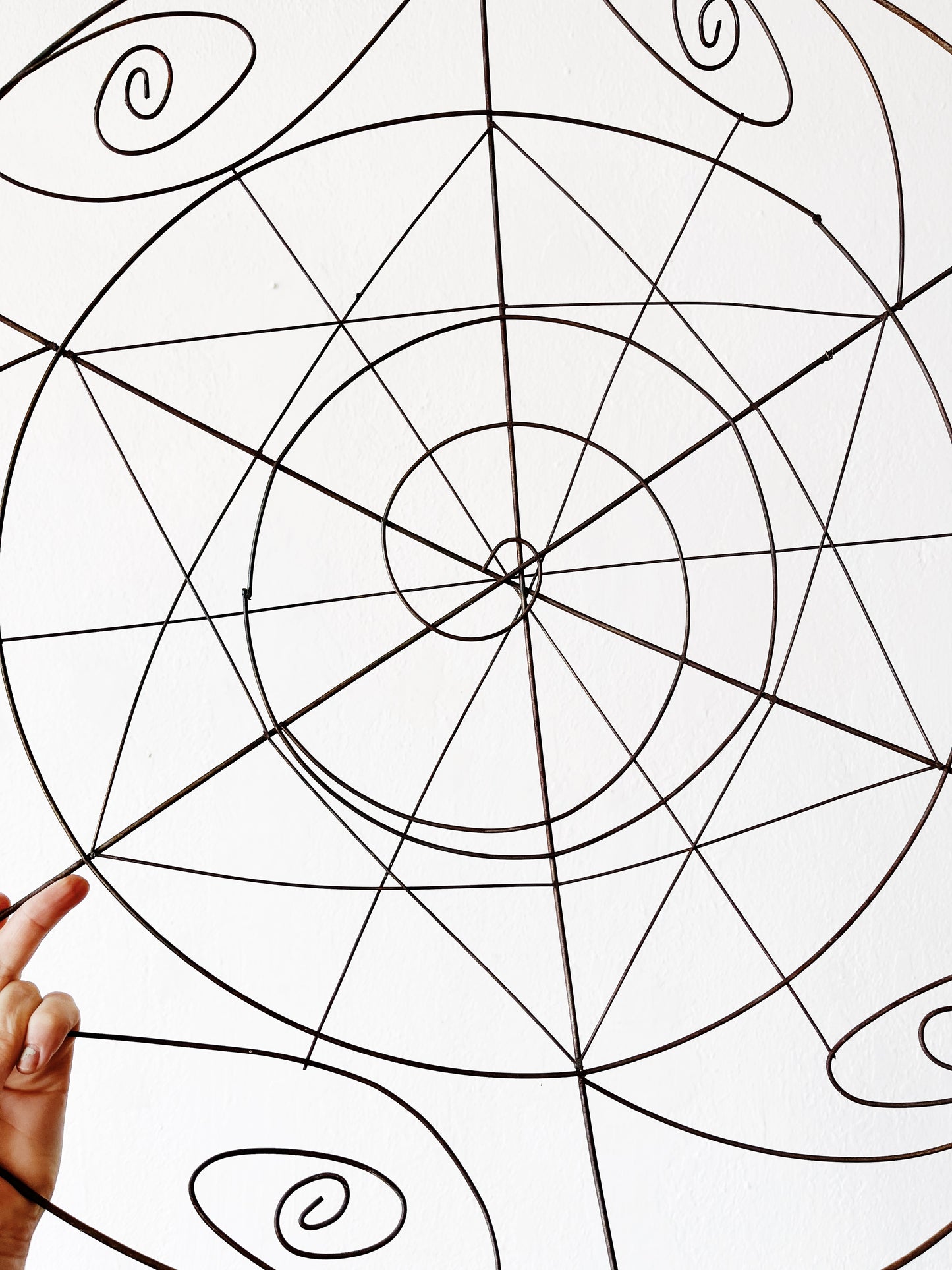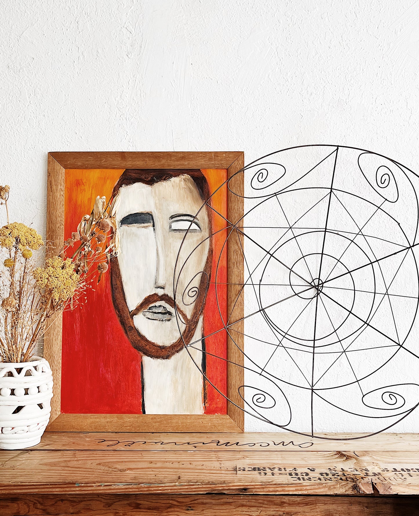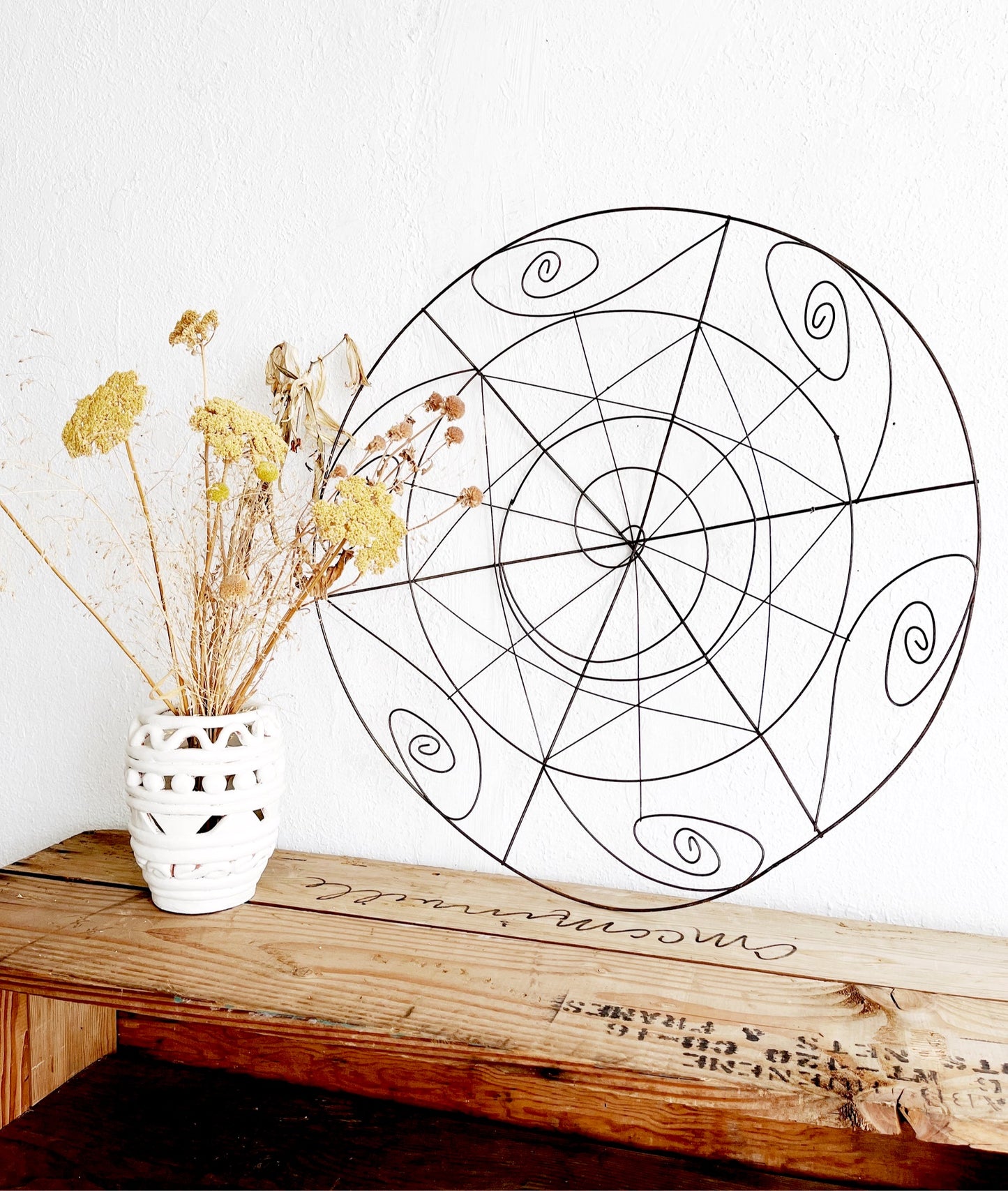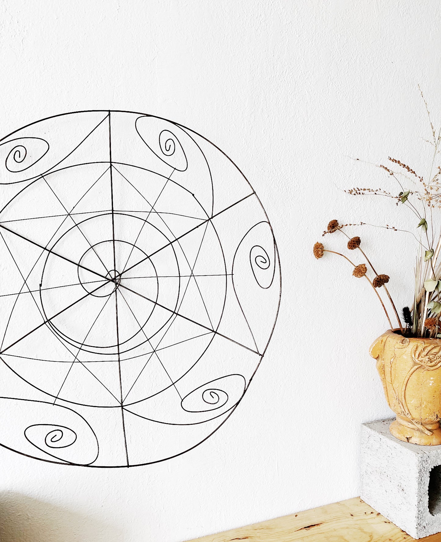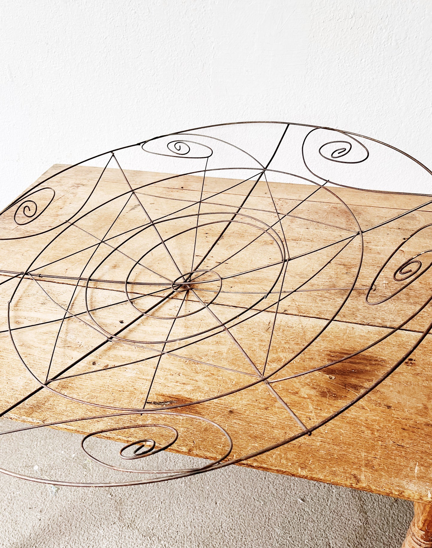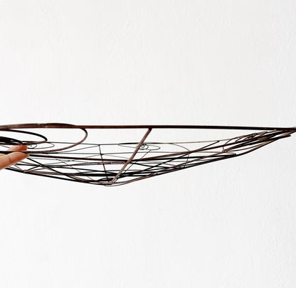 Fab look to this wire basket. Hand twisted and whimsical. Can hang or rest on a large table, a bit off kilter and that’s what we like
