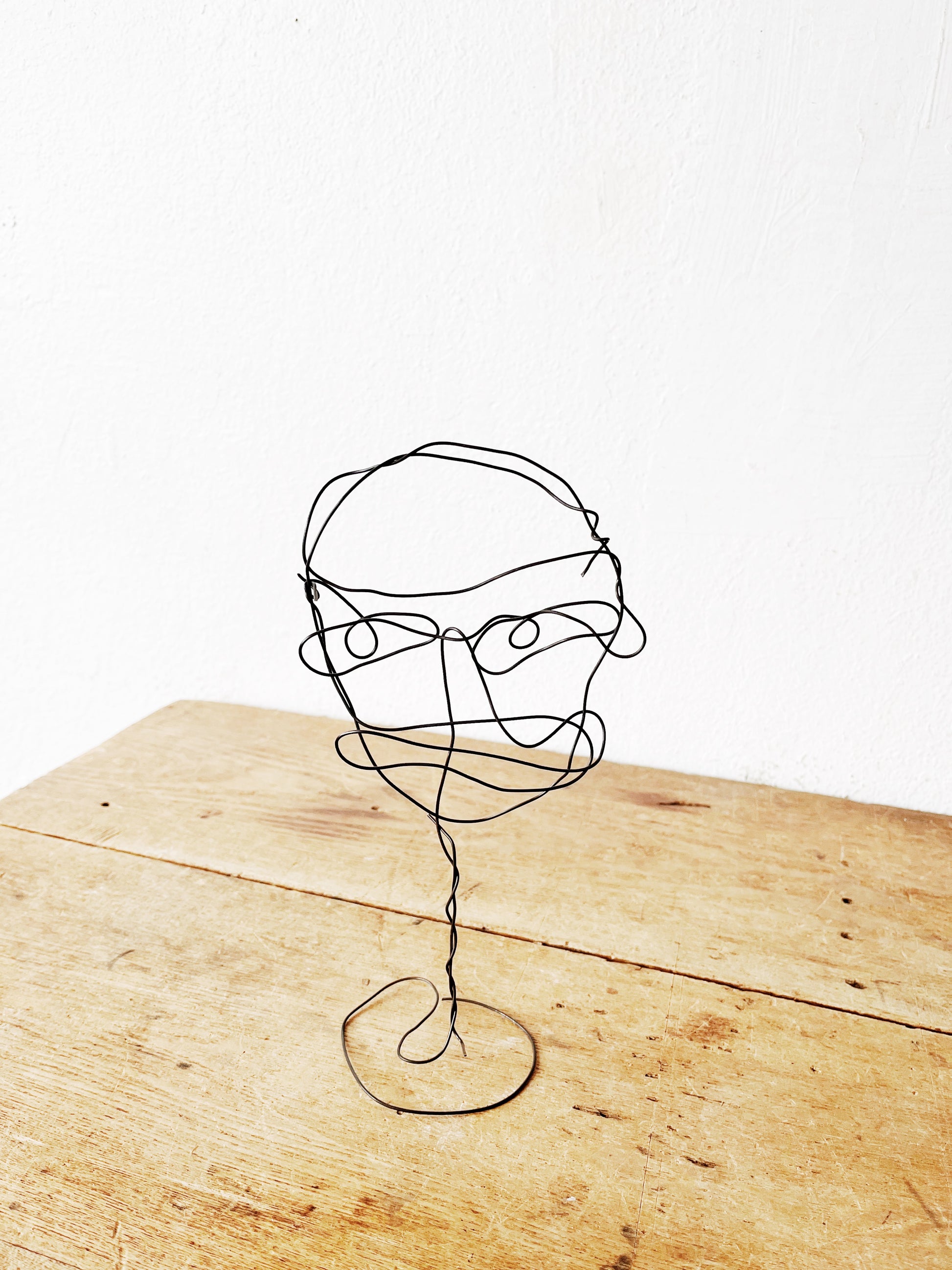 Funky pop wire sculpture with Picasso-ish look. Delicately balances and if you’re feeling artsy you can attempt to change the expression too