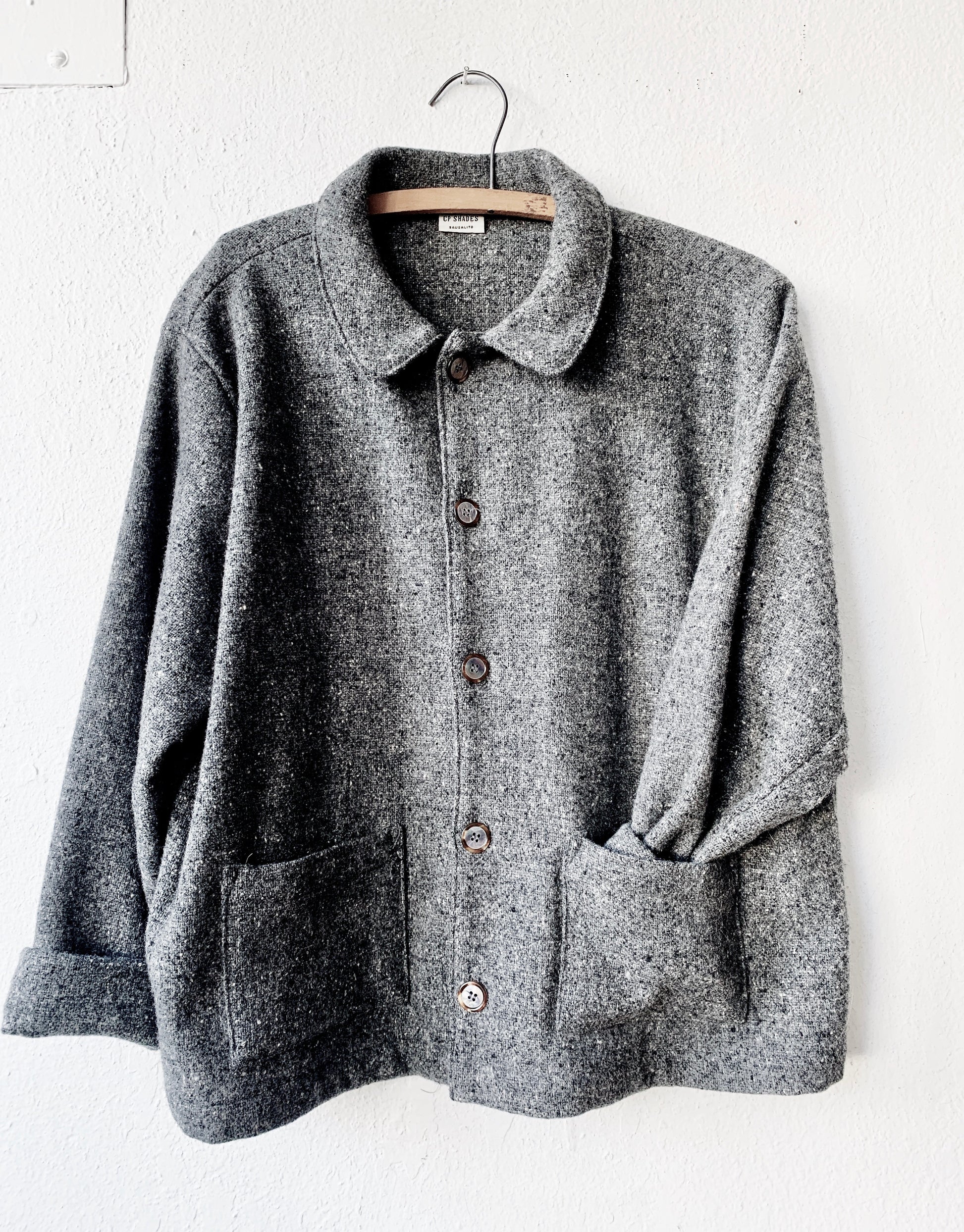 Wool CP Shades of Sausalito, CA. Boxy grey wool with pockets. Perfect boxy medium.