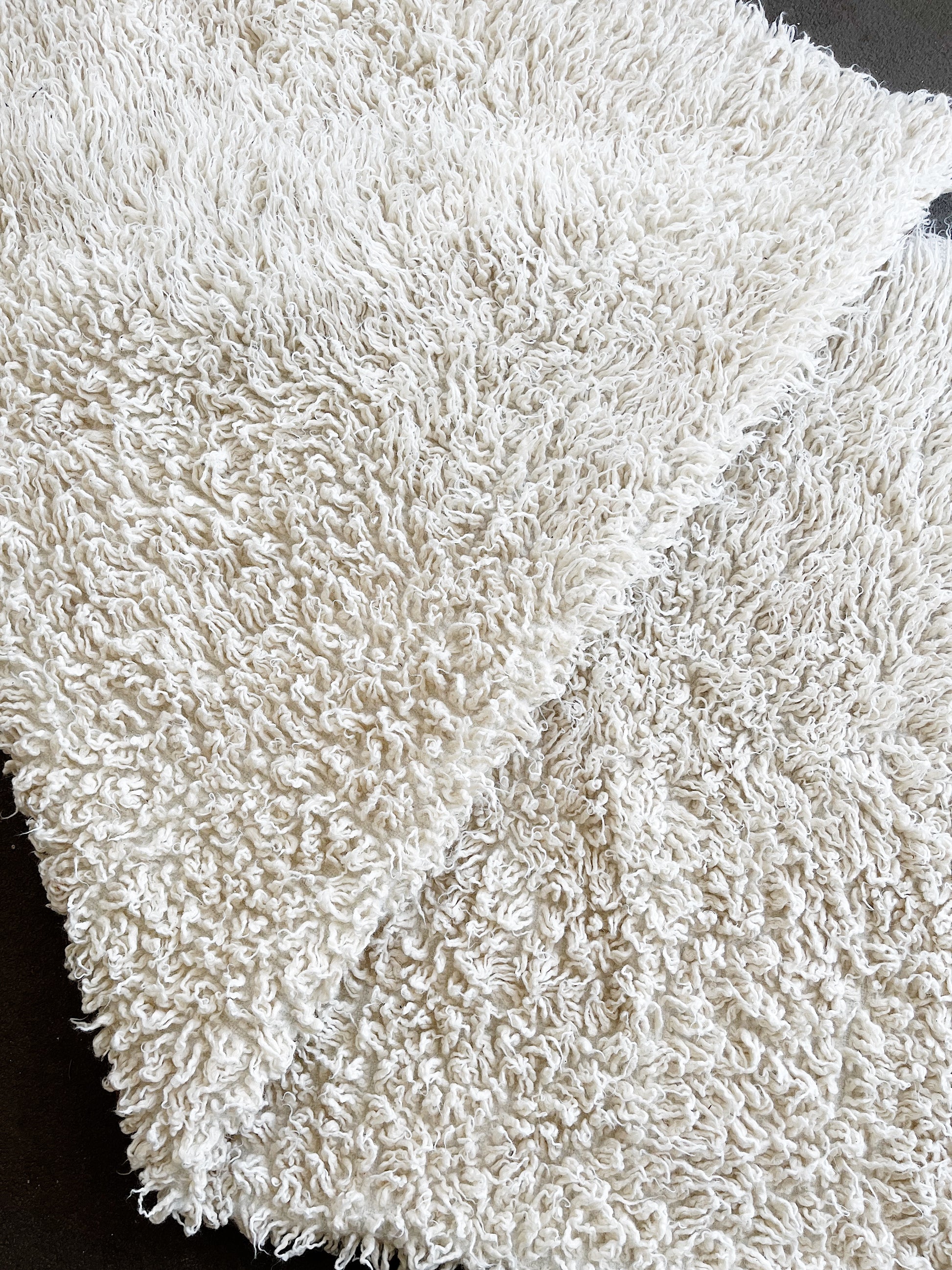 A nice natural wool shag rug in great shape. Larger room sized. Very clean and looks barely used