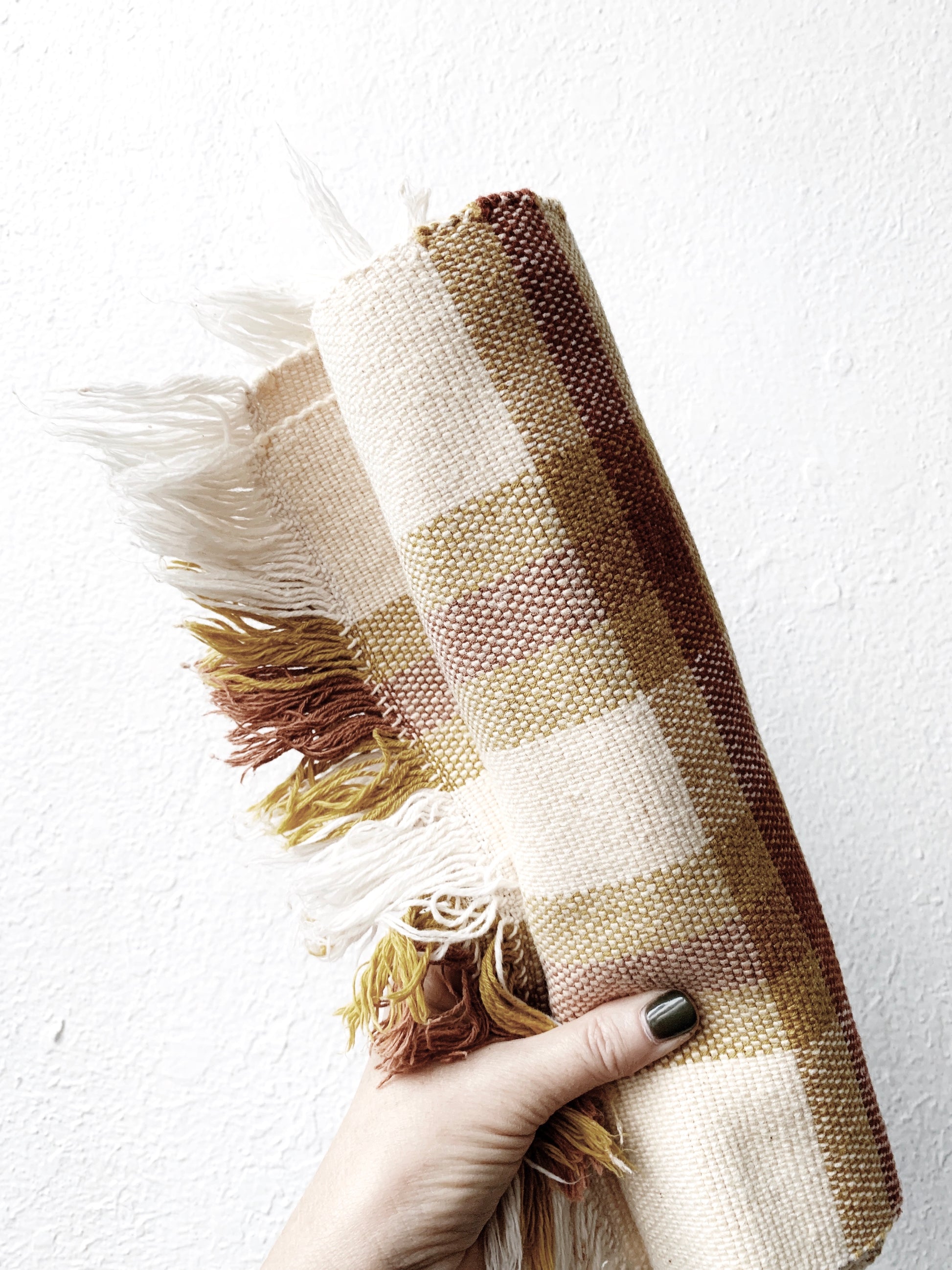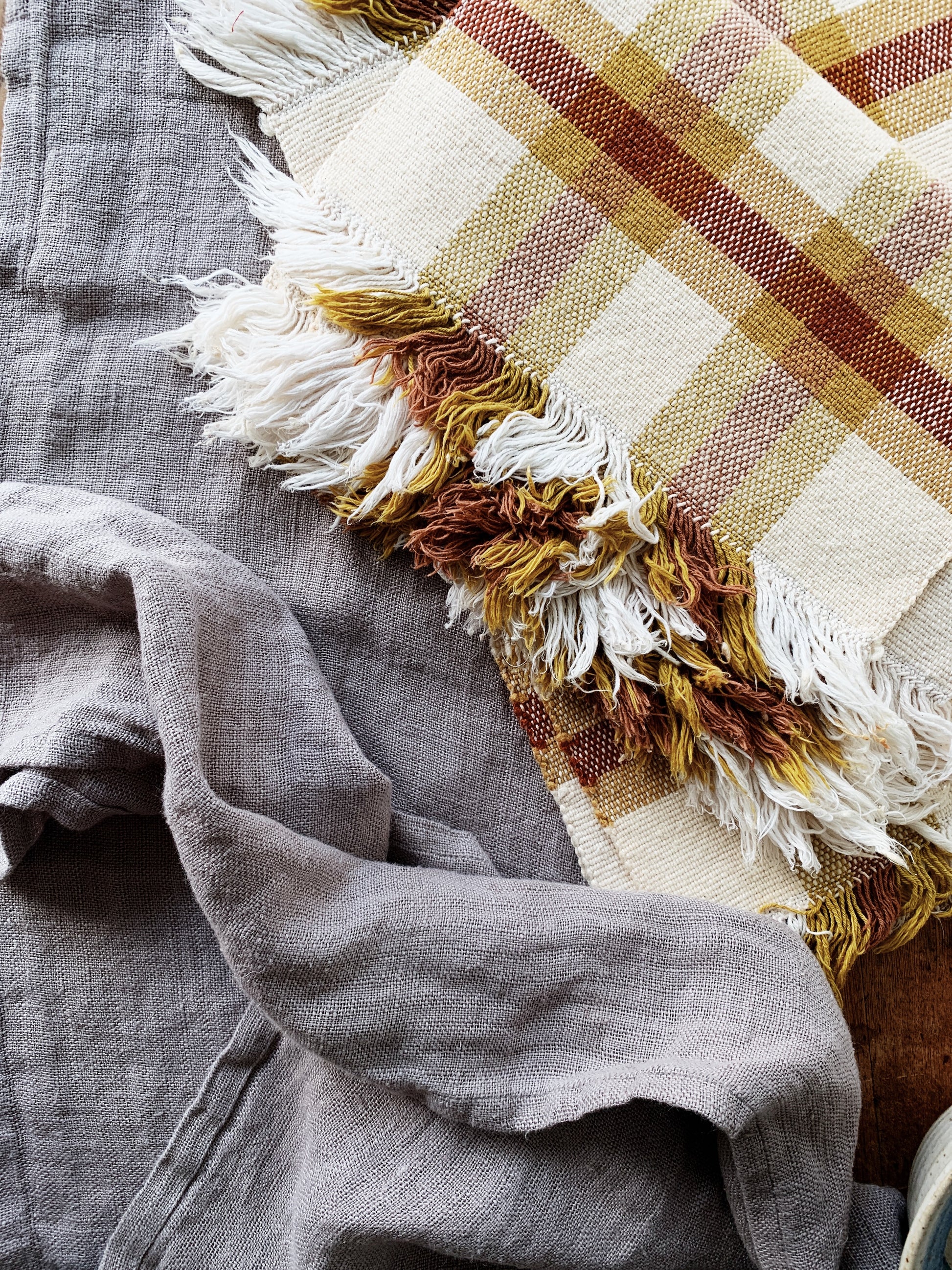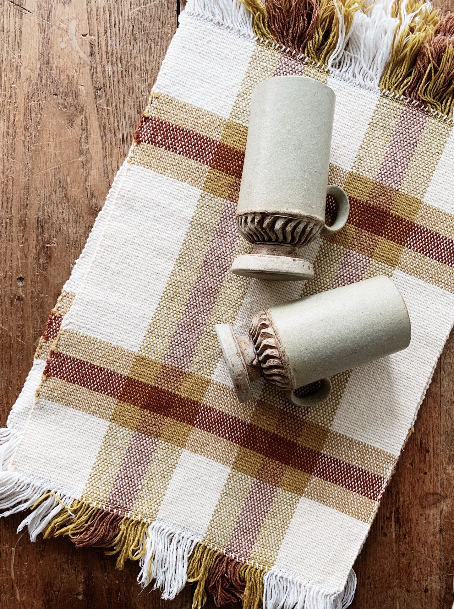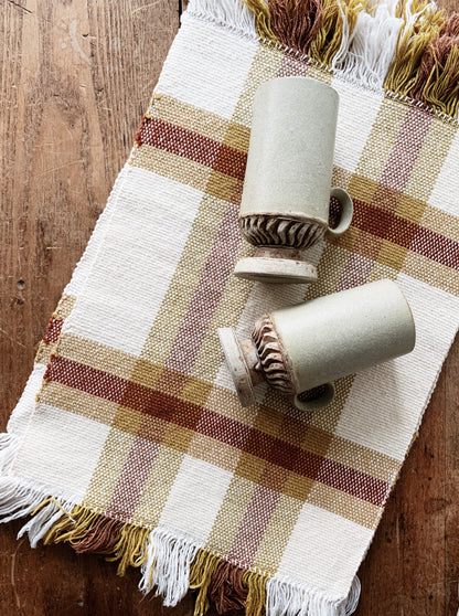 Really nice woven cotton placements in cream, mustard and terra cotta.